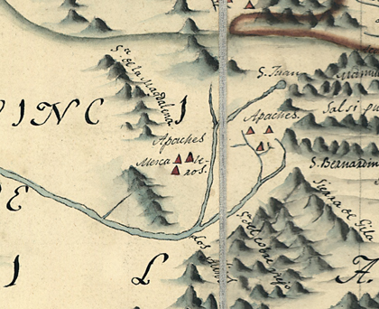 1771 Spanish colonial map showing Apache settlement. Click to enlarge. Courtesy of the Library of Congress.